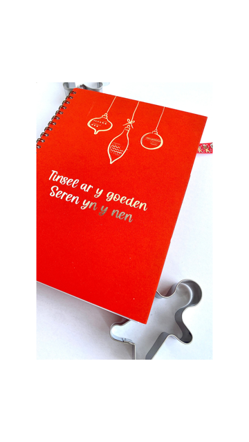 Joio paratoi i'r Nadolig? Dyma'r cynlluniwr i chi! Cynlluniwr Nadolig Cymraeg, maint A5. Mae ganddo glawr coch ag ysgrifen 'Tinsel ar y goeden, Seren yn y Nen' yn aur. Mae yna le i chi wneud rhestrau anrhegion, cadw trefn ar yr arian i chi'n gwario, lle i ysgrifennu syniadau bwyd, rhestr siopa, lle i chi sgwennu syniadau 'Elf on the Shelf' a llawer mwy.