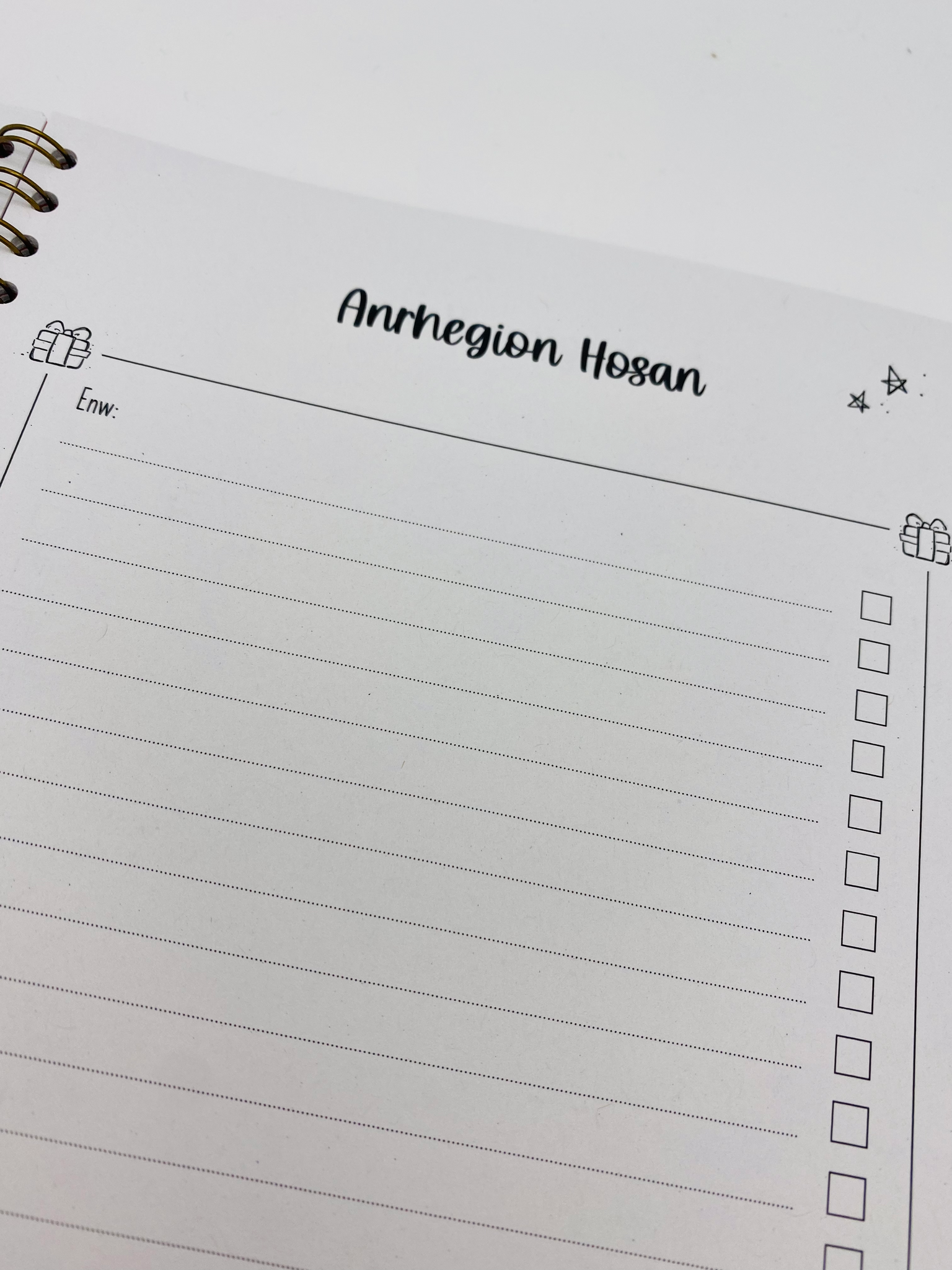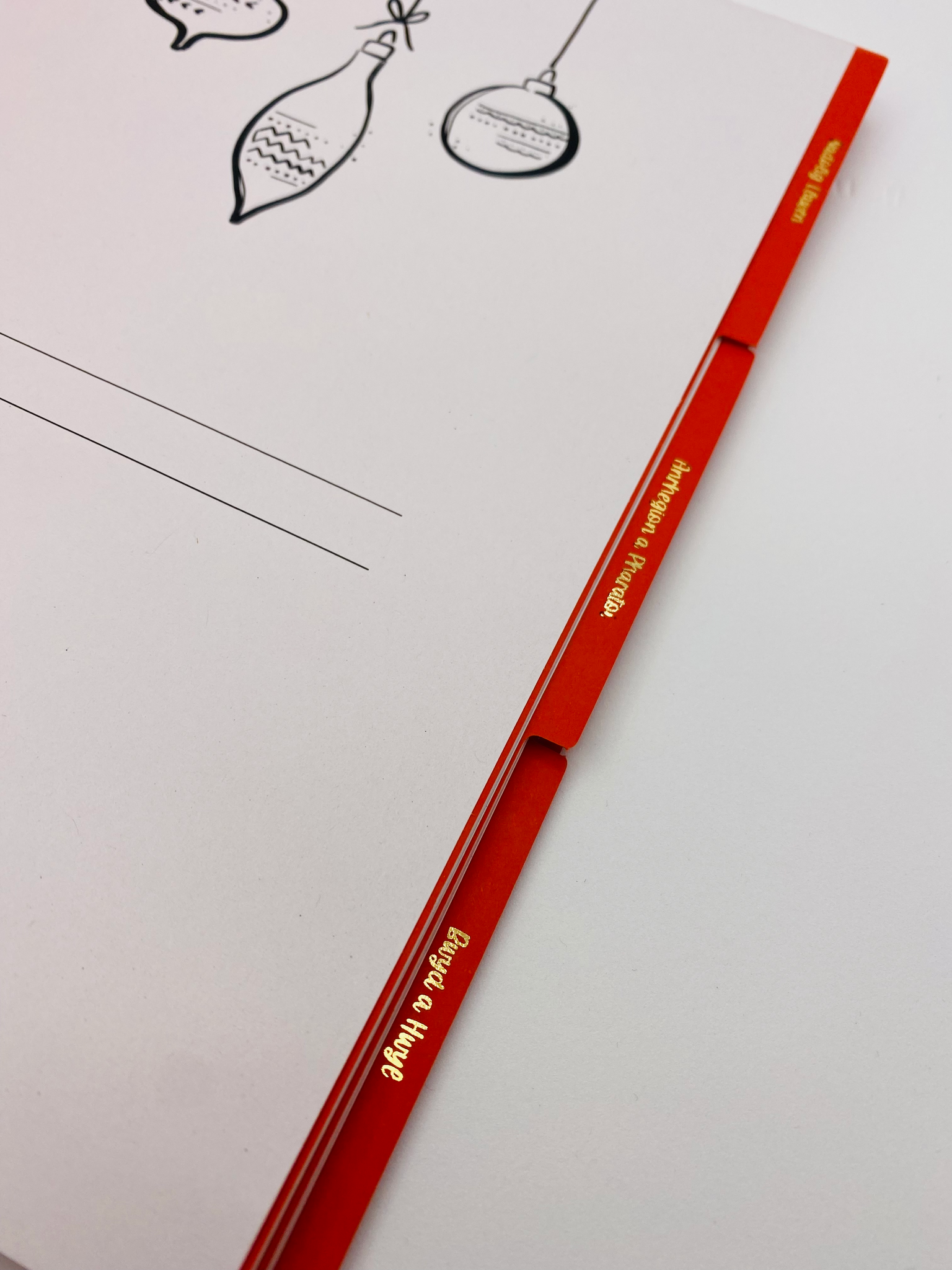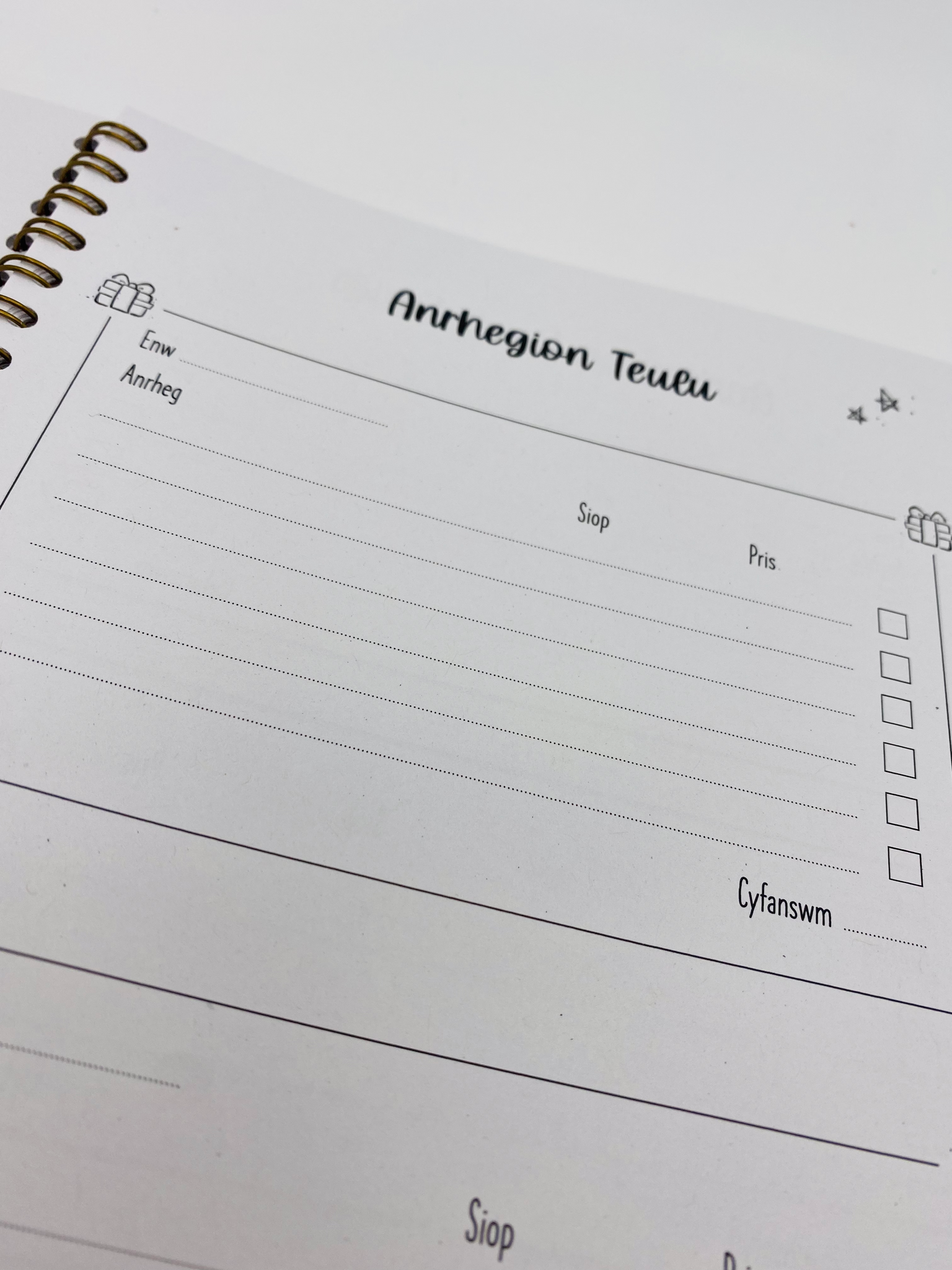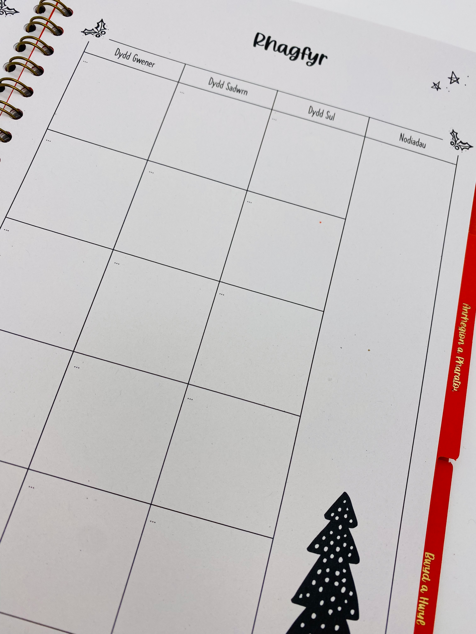 Enjoy planning Christmas and making lists? Then this is the planner for you! An A5 Welsh Christmas Planner, part of our Welsh Stationery range. A bright red cover with gold foiling and foiled tabs to separate each section. There is space to plan for presents, keep a budget, plan your Christmas Day lunch and food shop and there's even a space for you to write down some Elf on the Shelf ideas.
