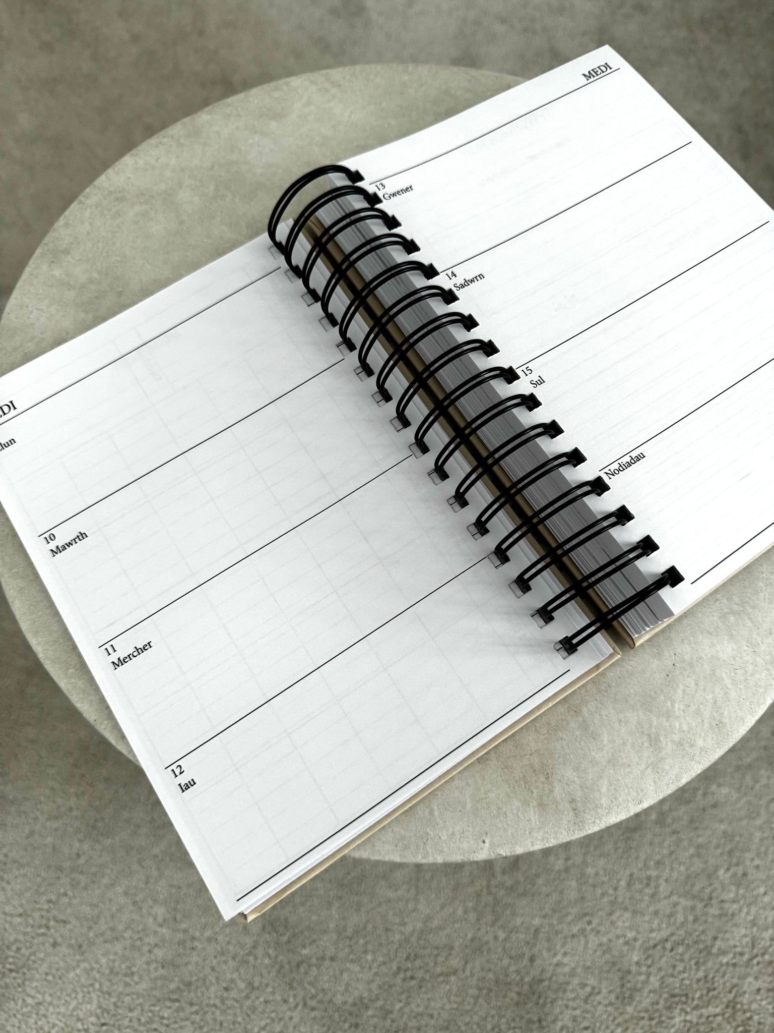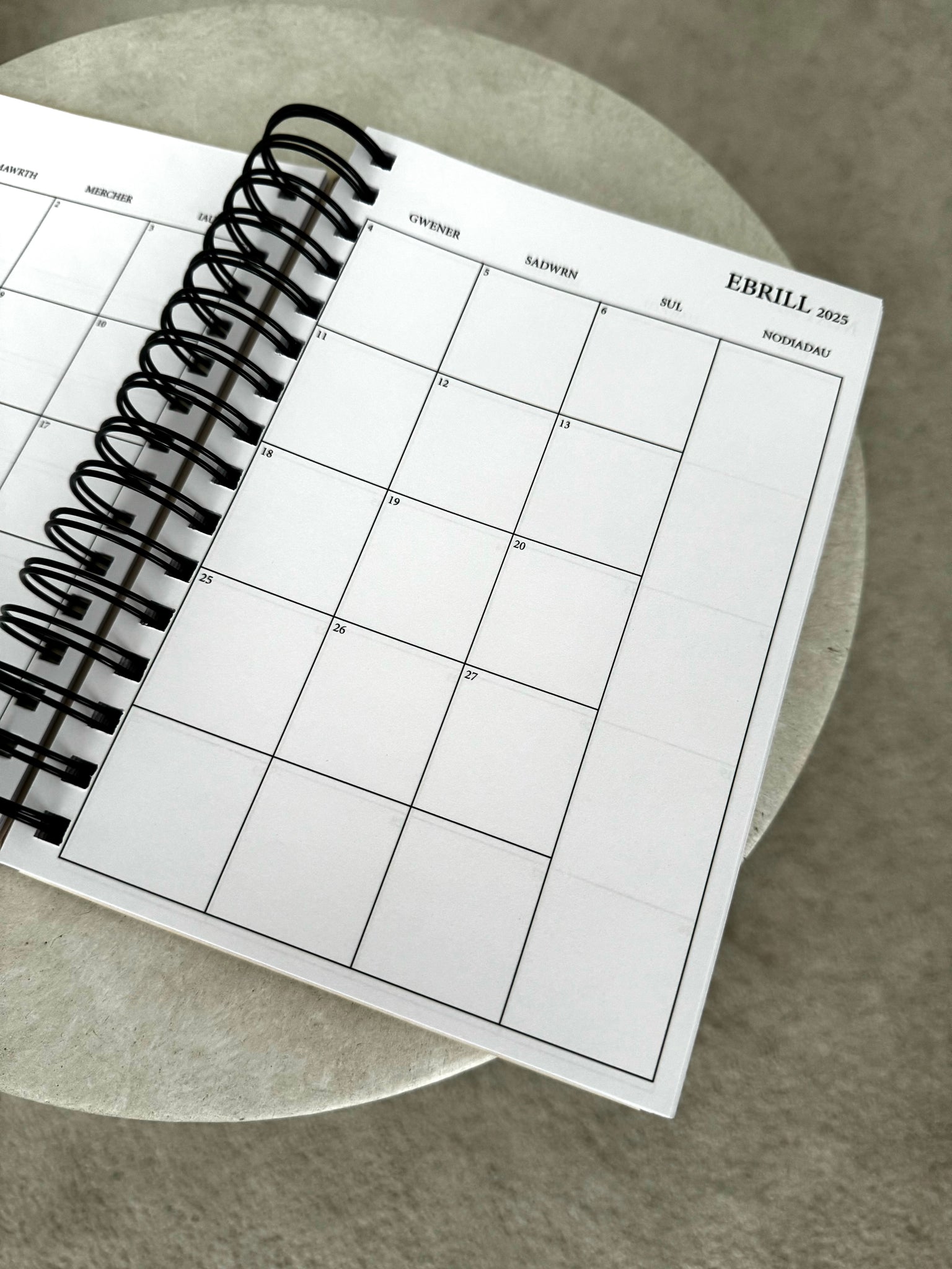 Dyddiadur sydd yn siwtio pawb! Yn llawn lle i pethau misol, wythnosol, nodiadau a dyddiadau pwysig.
