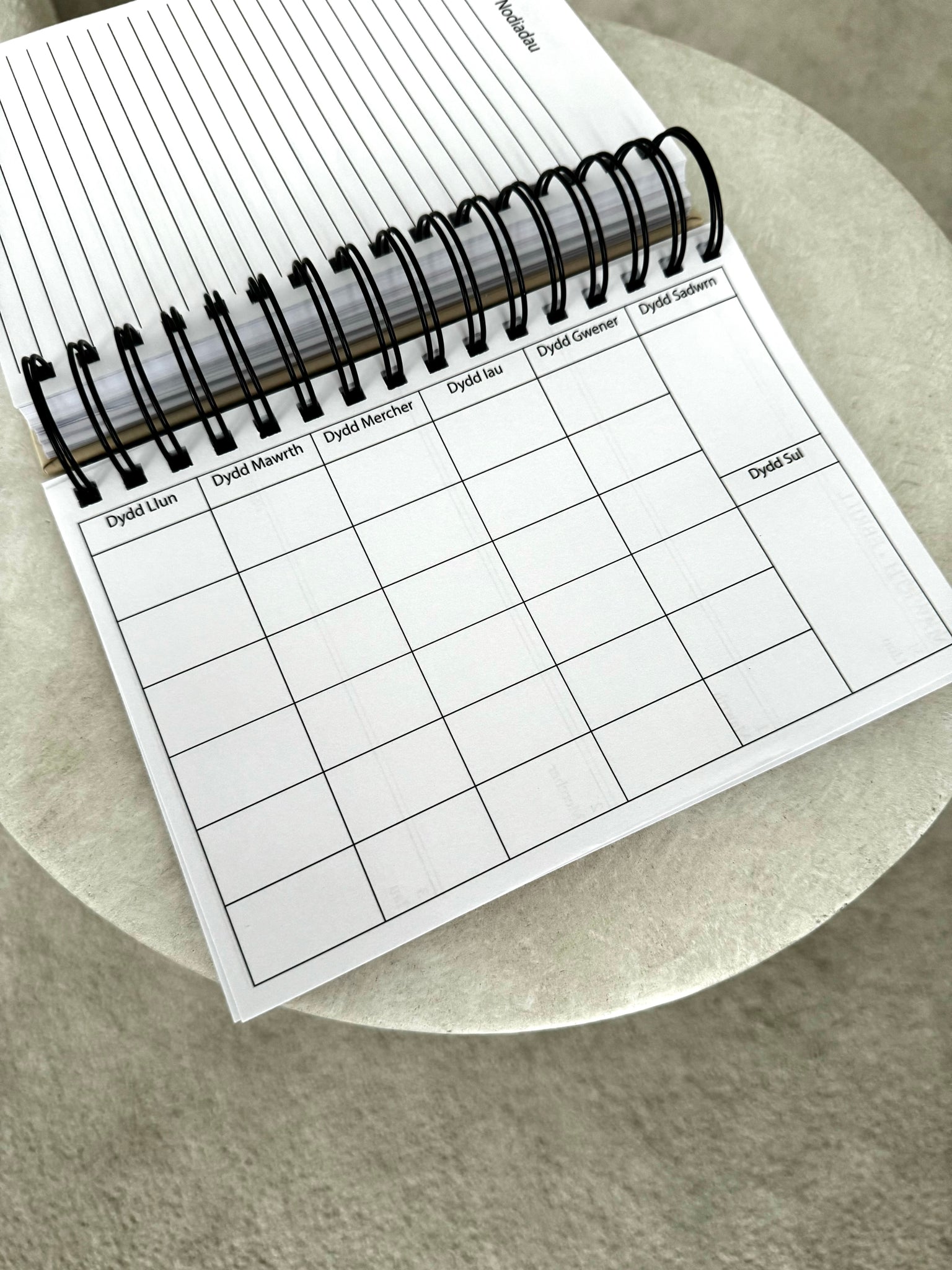 Dyddiadur sydd yn siwtio pawb! Yn llawn lle i pethau misol, wythnosol, nodiadau a dyddiadau pwysig.